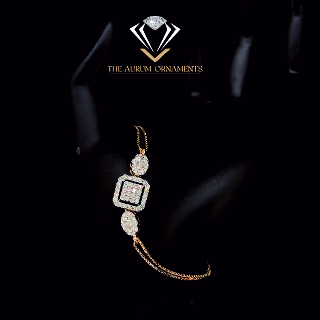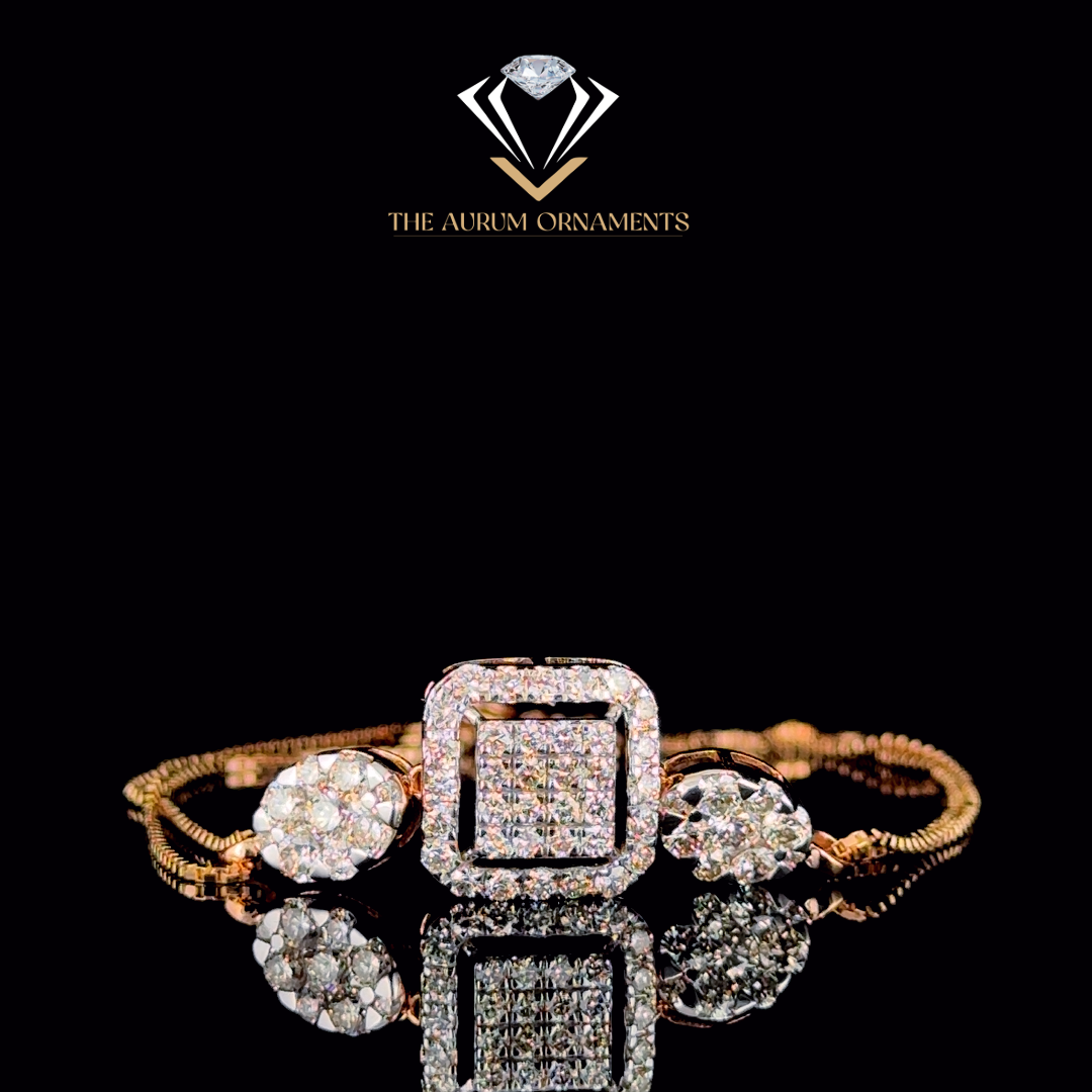 A 14 kt rose gold unique ladies bracelet weighing 4.630 gms, studded with 1.55 cts natural diamonds.
